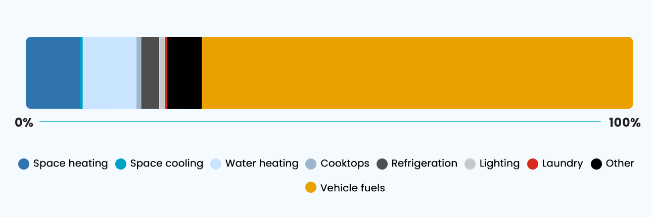 We don’t often factor our vehicle energy usage as part of the household. When you do, boy does it change the picture! When you think about it, it makes sense. It takes a lot of energy to make a two-tonne hunk of metal hurtle down the road at 100km/h, and that translates to vehicle fuels hoovering up over 70% of the energy usage in your home.