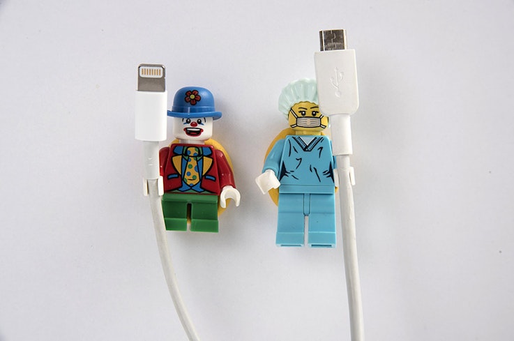 We made cable tidies from Lego mini-figures.