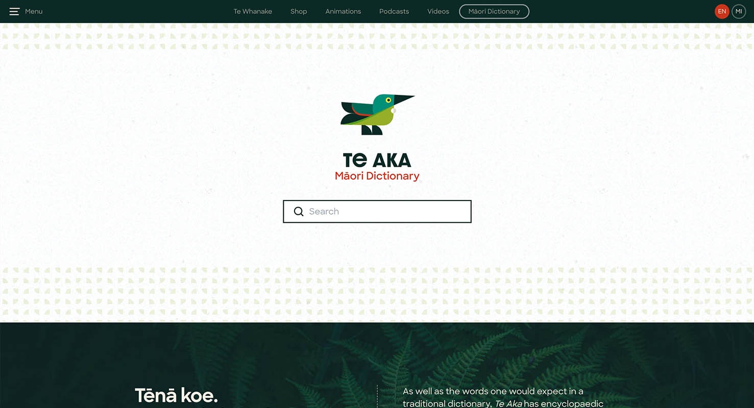 Perhaps the most crucial resource for anyone learning or using te reo, Te Aka is a powerful online Māori–English dictionary. As a student of the language, Te Aka is your best friend. We recommend bookmarking it in your web browser so you’re always ready to check spelling, or translate in either direction, at the touch of a button.