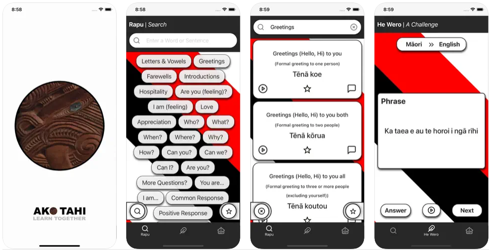 In each lesson, the voice of a kaiako (teacher) will speak phrases which you’ll repeat back. On-board language processing (of the same kind used by digital assistants such as Alexa or Siri) assess whether you’ve pronounced the phrase correctly. If you have, the kaiako moves on – if not, you’re provided with the spelling of the word to help you practise and get it right.