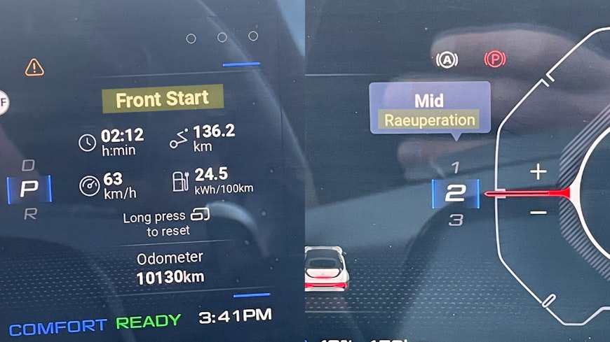 The software in the car also just feels like it was rushed out of production too soon. There’s some odd spelling on the dashboard – “Front Start” instead of “From start” for the trip computer and “Raeuperation” instead of “Recuperation” for the regenerative brake setting. The 360° camera didn’t start on one occasion. The one pedal driving system wouldn’t engage, no matter what battery level the car was at. Overall, it felt in desperate need of a software update.