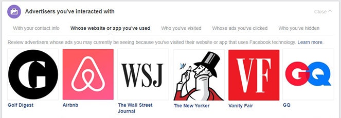 I asked Consumer writers to check what Facebook knew about their profiles. Many had Golf Digest listed as a brand they had interacted with, though none could remember doing so. The golfing magazine is part of the Conde Nast group, as are Vanity Fair and The New Yorker. Interact with one of Conde Nast’s titles and you’ll be linked to all of them. You may not like golf, but maybe one of your friends does and now Conde Nast has access to your contacts.