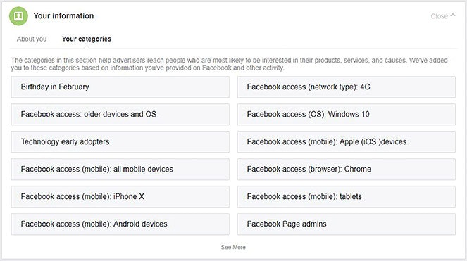 Facebook also allows businesses to “match” you. For example, if you give a supermarket your phone number or email address, it can add it to a customer list that can be matched to your Facebook profile, giving the supermarket more insight into your habits.