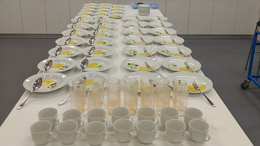 Our testers check how well the dishwashers tackle a full load of dirty dishes by measuring out equal amounts of steam-baked oats, egg yolk, spinach, baby cereal, butter, tomato juice and tea on to our standardised set of crockery. They also put egg yolk on to cutlery. We then let the crockery and cutlery dry for 15 to 18 hours before putting them in the dishwasher.