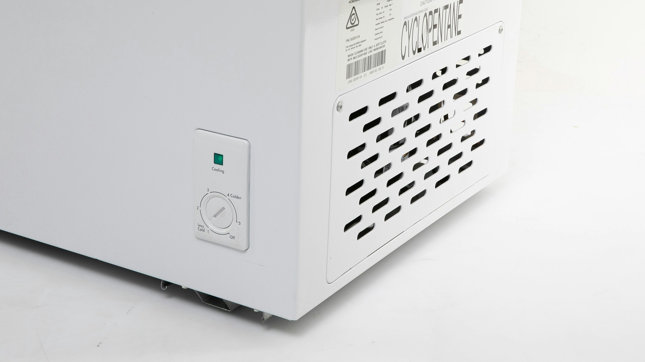 This is how long it takes the freezer to warm up if power is cut. The freezer is switched off in a room with an ambient temperature of 32°C. We time how long it takes for the freezer to warm from -15°C to -5°C.