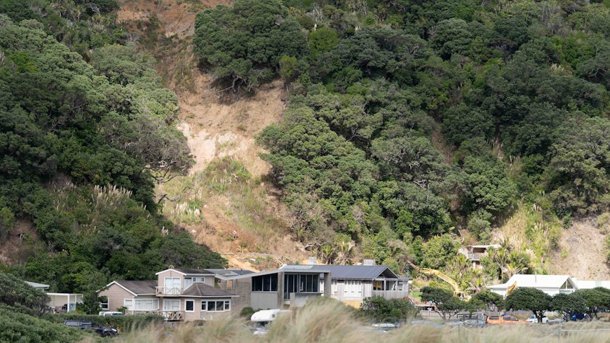 The landslide started on a neighbouring property, and “it just came through and missed our house by a few metres,” said Tasha. I spoke to Tasha about her experience with house insurance after Cyclone Gabrielle ripped through Piha in February 2023.