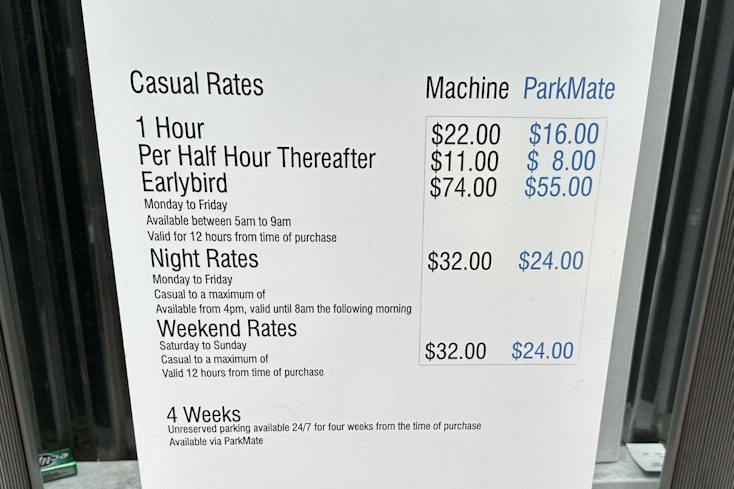 Nearby, the privately owned Sky City carpark charges $16 for the first hour and $8 for every hour after, or a maximum daily charge of $48 a day.