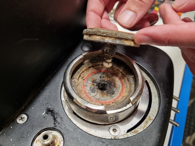 You can’t win ‘em all, and sadly our efforts to repair Consumer chief executive Jon Duffy’s Ascaso espresso machine were unsuccessful. The machine’s portafilter and group head were completely gunked up with burnt coffee residue.