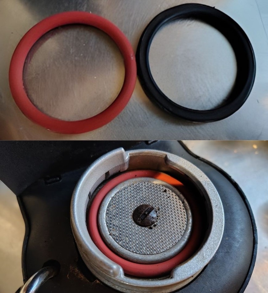At home, our Krups espresso machine hadn’t missed a beat in 20 years – until it started squirting boiling water at us. Investigation revealed the O-ring seal between the portafilter and boiler had been squashed permanently out of shape.
