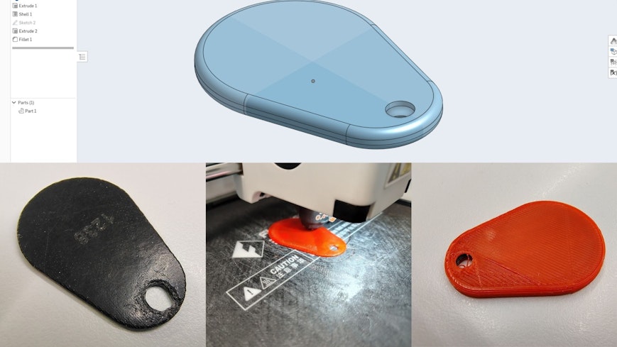 Consumer staff use teardrop-shaped door fobs to access the office. After a lot of use, the fobs tend to wear out, snapping at the hole where they thread onto a keyring. The solution? A new 3D-printed housing.