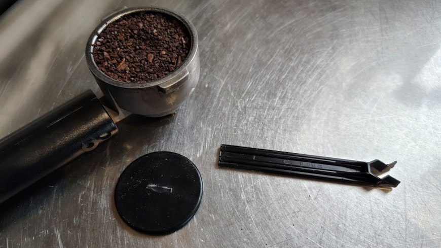The tamper (the gadget you squash the ground coffee into the portafilter with) was also broken.