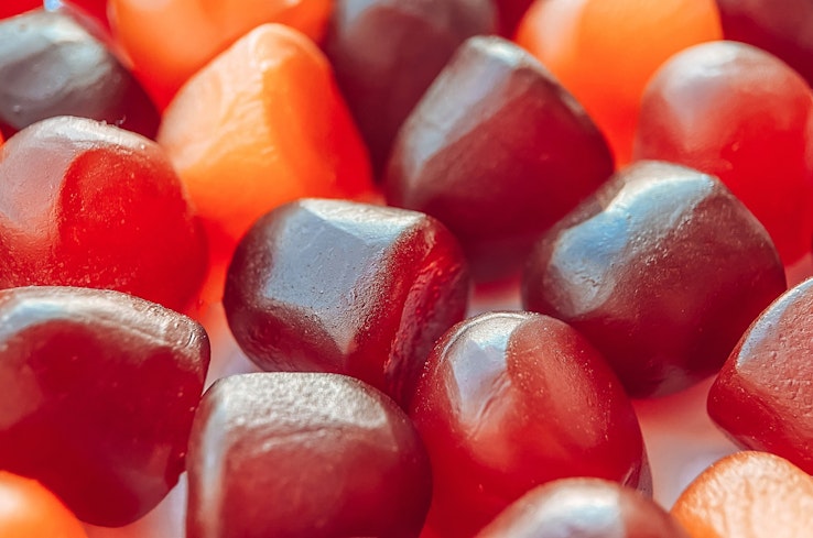 When we tested two brands of gummies at an independent lab in 2017, one product contained 56% sugar, the other 65%. That’s more than some similar-looking sweets – Haribo Gold Bears contain 45.6%.