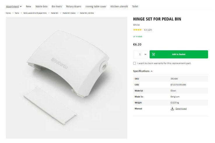 So, then I looked for a 3D print file of the rest of the hinge, but to no avail. That’s when I decided to order the spare parts direct from Brabantia.