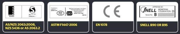 4 of the standards labels or stickers follow a standardised format (see examples below). The fifth one may just state that the helmet meets the US Consumer Product Safety Commission's bicycle helmet safety standard.