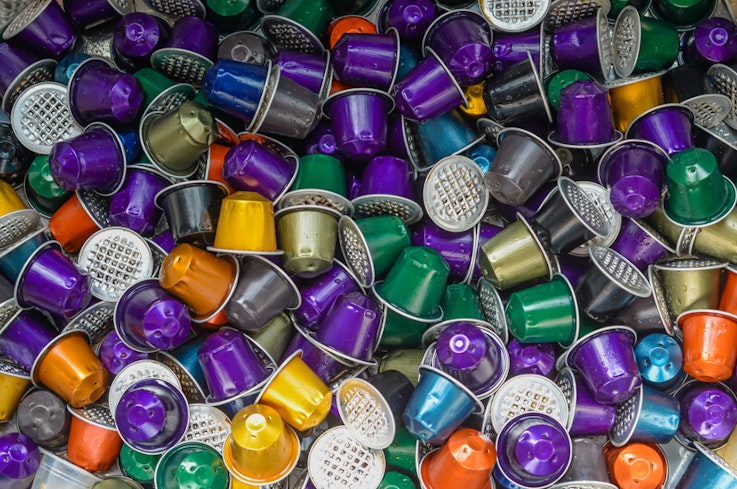 We emptied coffee capsules from three major brands and weighed them. Nespresso (aluminium) capsules weighed 1g on average, while Nescafe Dolce Gusto (aluminium and plastic) and Caffitaly (plastic) capsules were just over 3g each.