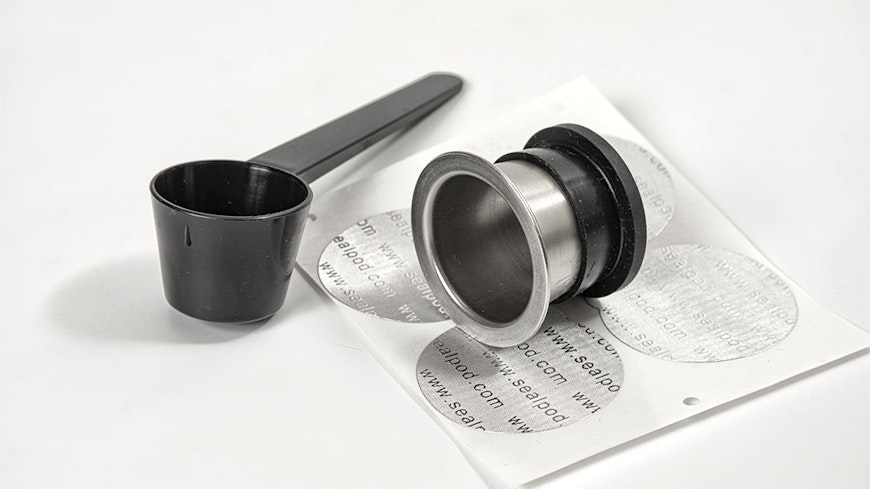 This capsule isn’t 100 percent reusable. It has a stainless-steel body, but the lid is an aluminium sticker you throw away after use. This means there’s still waste and an ongoing cost to using these capsules. Included in our starter pack were 100 aluminium lids, a scoop (which can be used as a tamper) and a rubber fresh cover lid for the bottom of the capsule (so you can fill capsules ahead of time and keep the coffee fresh). You can buy either aluminium lids for coffee with a crema, or paper lids for both tea and coffee making.