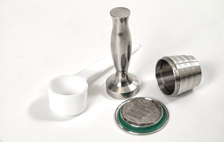 One of the biggest names in the reusable coffee capsule game, iCafilas is a stainless-steel capsule. It has a rubber seal under the top rim and inside the capsule to ensure no pressure is lost during extraction. It comes with a brush, instructions and a scoop that can also be used to tamp down the coffee.