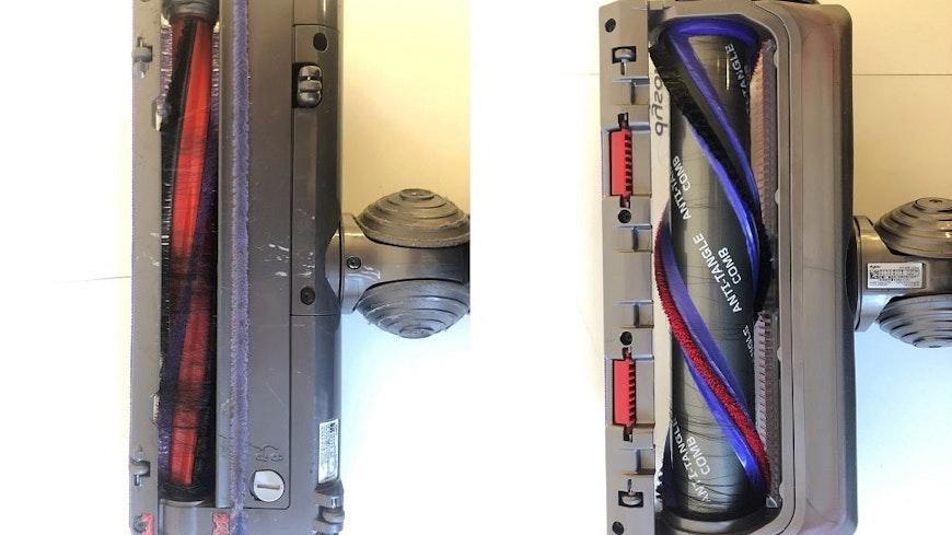 Dyson V6 (top) vs V15 (bottom) with hair tangled