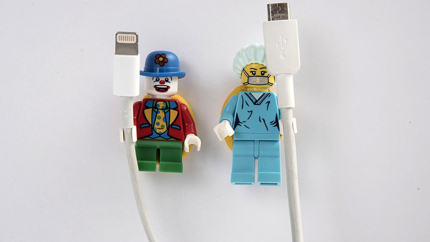 We made cable tidies from Lego mini-figures.
