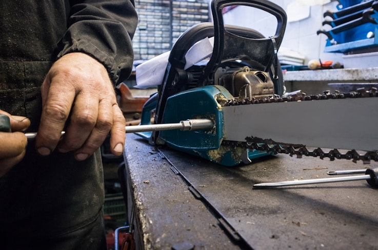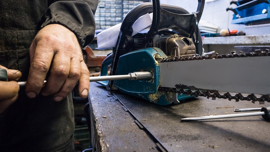 You’ll need to adjust the chain tension on a chainsaw to make sure everything stays in one piece. You might need to do this after using the saw for a few minutes, as the chain expands when it gets hot. It can be a fiddly process, involving a few bolts and screws – although some models now allow tool-less adjustments.