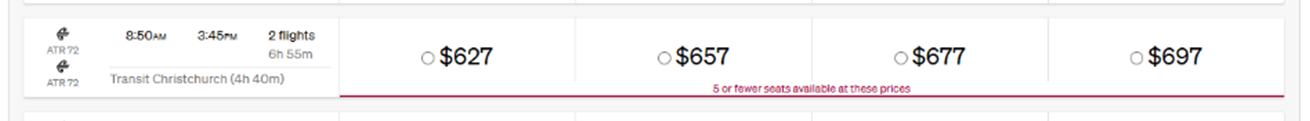 Air New Zealand Chief Commercial Officer Scott Wilkinson said “We regularly review our online booking experience to ensure it best serves the needs of our customers. Notifying customers when five seats or fewer remain at a particular price point is factual information. This detail helps travellers make more informed booking decisions, particularly during peak travel periods, giving customers access to relevant information that will help with planning their journeys.”