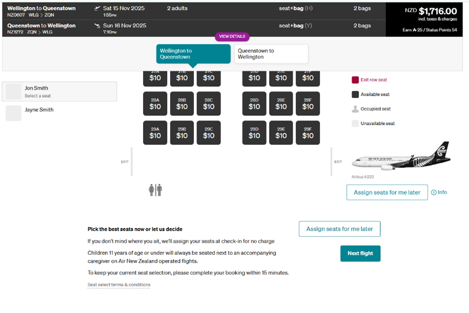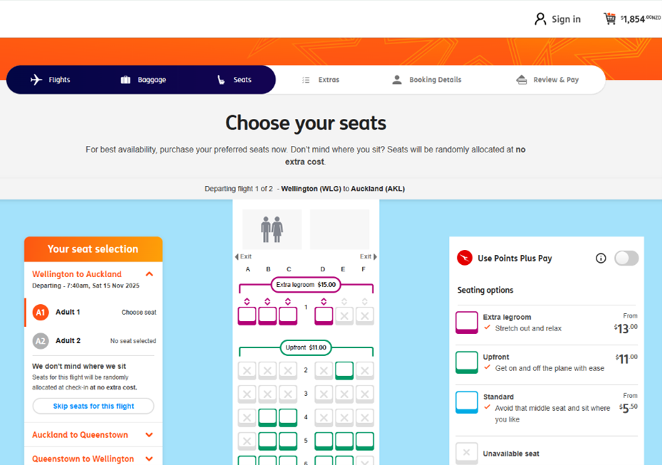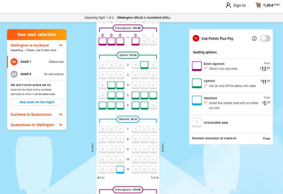 On Air New Zealand’s site, when you arrive on the seat select page, the choose a seat options are the first thing you see. It’s only when you scroll down, you’re informed that you don’t have to pick one.