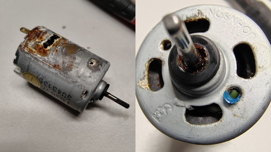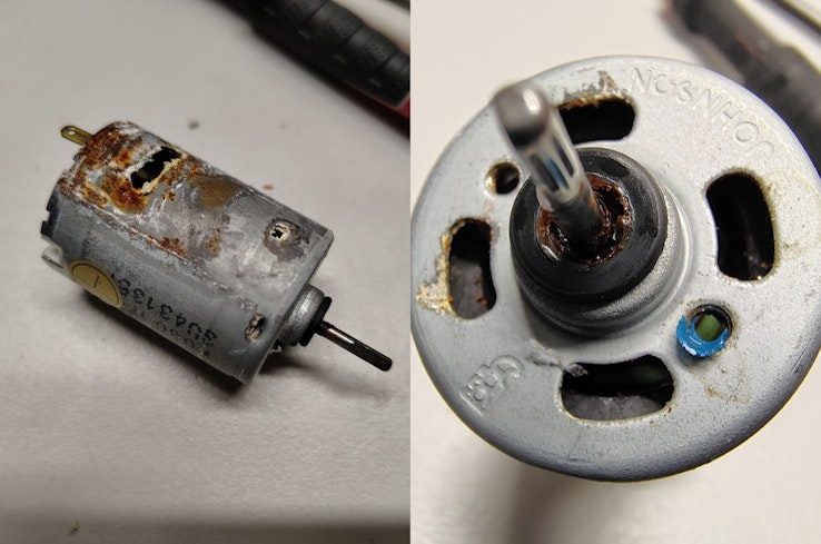 There was corrosion on the underside of the motor and around the spindle shaft.
