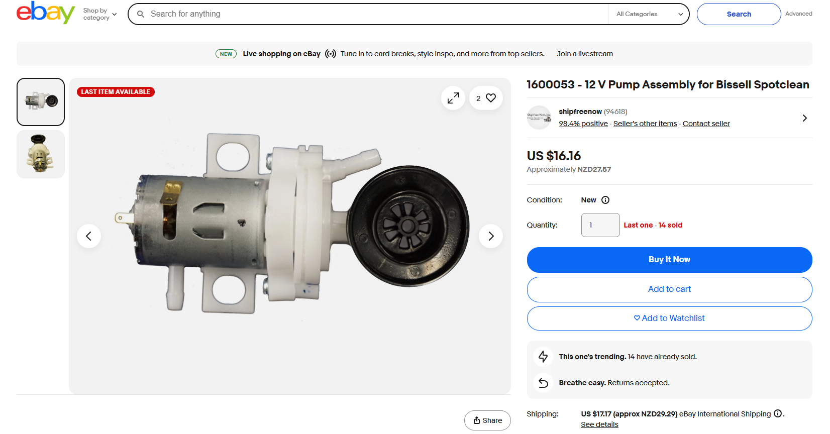 The Trade Me listing that caught my eye was titled “Bissell spot cleaners faulty”, and the description was: