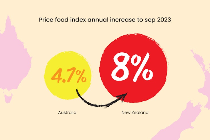 New Zealand had an 8% food price index increase to September, according to Stats NZ, compared to Australia’s 4.7% increase to September.