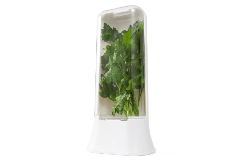 Once we get past the awful name, what is a herb storage container and how does it work? Herbs are the kind of greens that start going off as soon as they’re cut from the plant. That’s why it’s great if you can find a way to extend their life in your fridge.