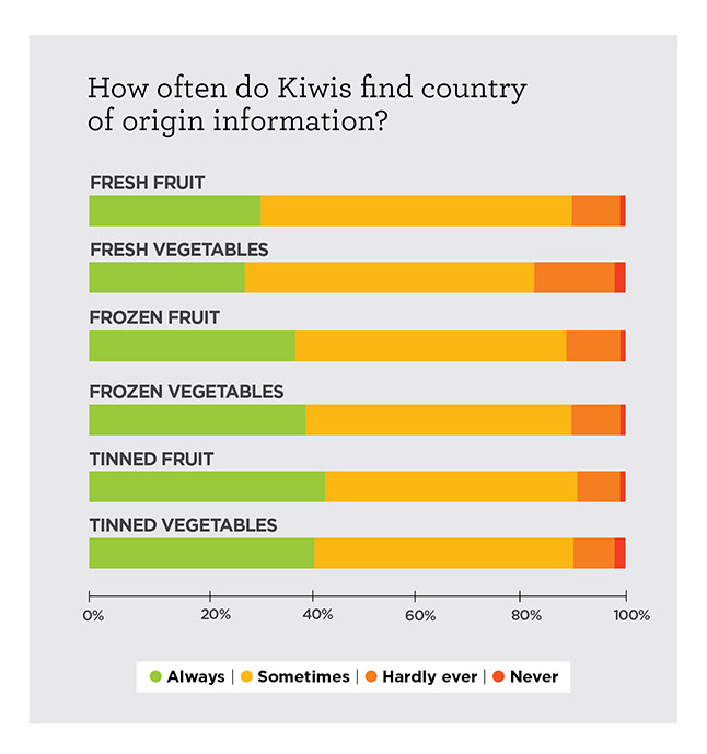 Sixty-five percent of shoppers said they looked for labelling information when they bought fresh fruit. But less than a third (32%) always found it. Even fewer (29%) always found the information when they bought fresh veges.