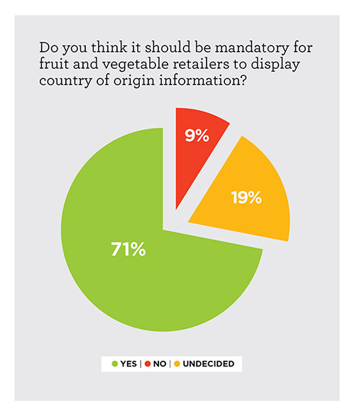 Our 2017 survey with Horticulture New Zealand found 71% of New Zealanders want mandatory country-of-origin labelling for fruit and vegetables. Only 9% were opposed.
