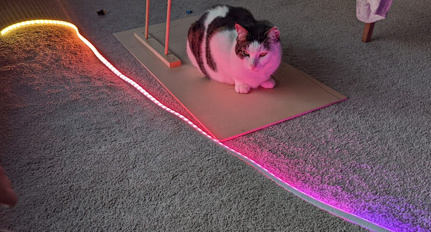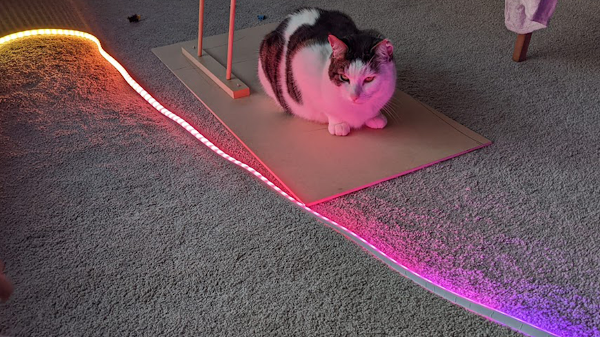 We didn’t really have an appropriate spot for the strip. It can be stuck on to surfaces using the double-sided tape on the rear, but I didn’t want to attach it to anything before testing so we just draped it over the mantelpiece and enjoyed the effect from there. It’s pretty flexible despite being quite thick and it certainly feels durable. It can also be cut to a shorter length if need be (just turn it off before doing so!), or it can be attached to other strips with connectors to extend up to 10m.