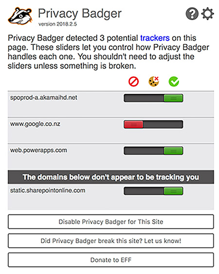 I also recommend installing privacy software on your browser. I use the Privacy Badger extension tool from the Electronic Freedom Foundation, which stops Facebook tracking me across the web and learning my habits.