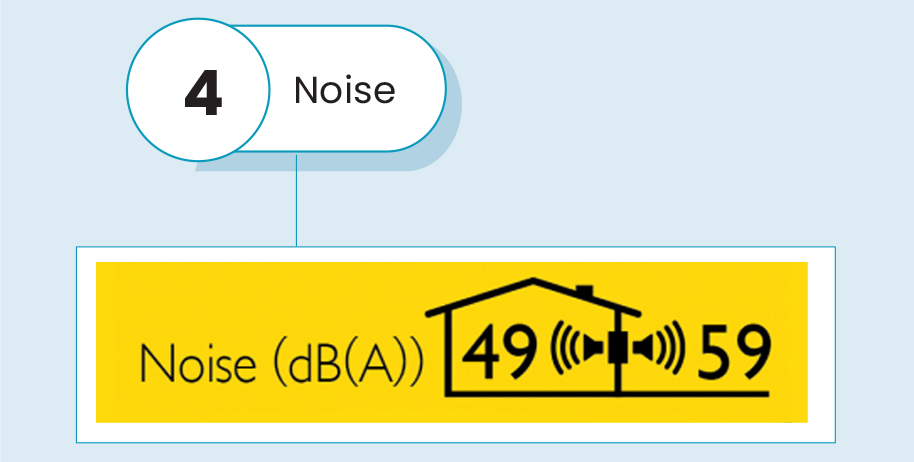 There's a diagram of a house in the bottom left of the ZERL label. The numbers show the noise level of the heat pump units inside and outside the house. The outdoor reading is especially important if the unit is located near windows, doors or a neighbour’s house.