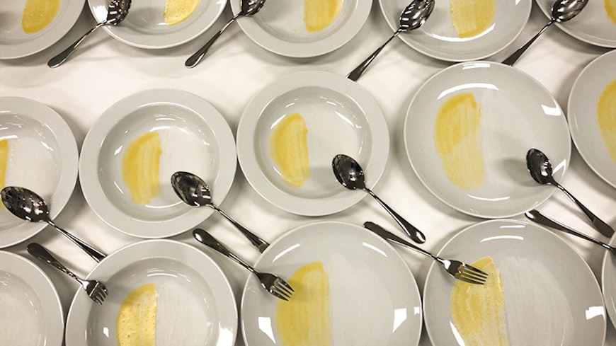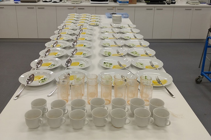 Our testers check how well the dishwashers tackle a full load of dirty dishes by measuring out equal amounts of steam-baked oats, egg yolk, spinach, baby cereal, butter, tomato juice and tea on to our standardised set of crockery. They also put egg yolk on to cutlery. We then let the crockery and cutlery dry for 15 to 18 hours before putting them in the dishwasher.