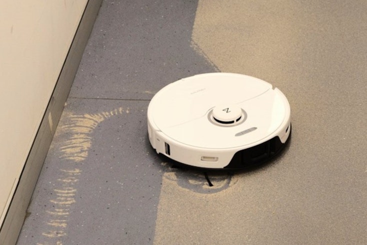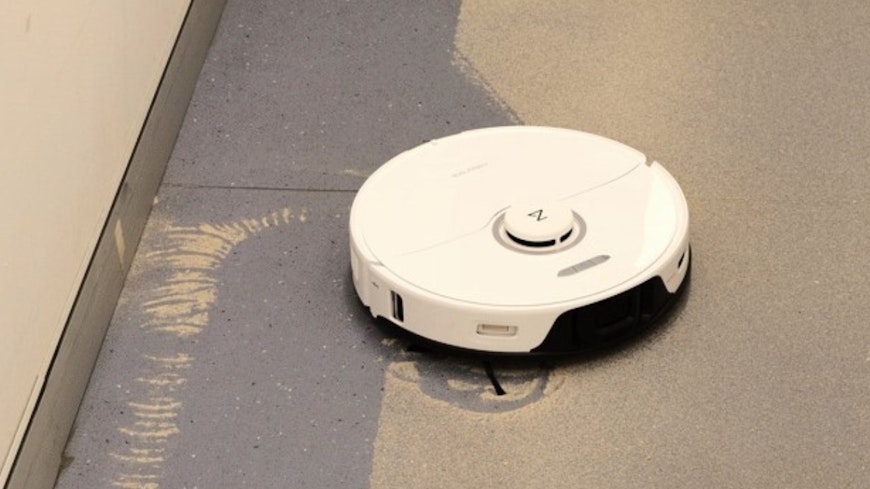 We scatter a measured amount of sand evenly over a vinyl floor and let the robot loose for 25 minutes, or until the end of its cleaning cycle. We periodically measure the dirt collected and the score is based on the total amount picked up.