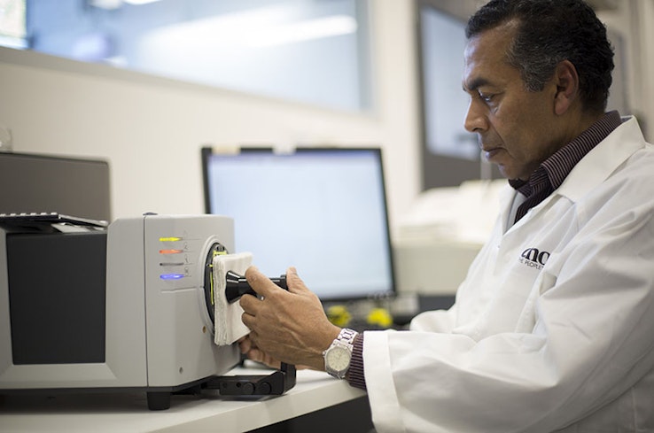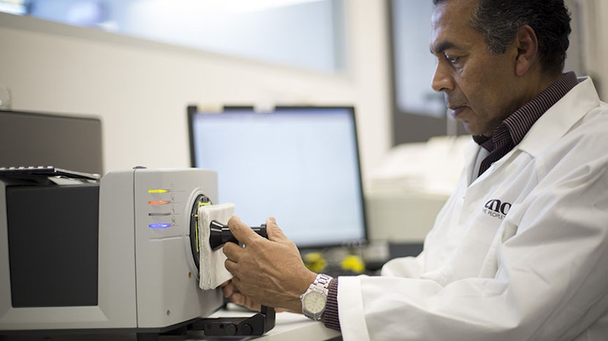 After the wash, we remove the swatches and analyse them with a spectrophotometer. This machine detects the amount of light reflected from the swatch, which we use to calculate how much dirt has been removed. In simple terms, the whiter the swatch, the more dirt has been removed.