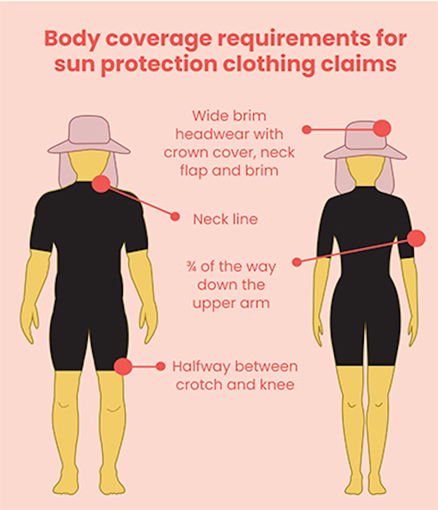 This means a UPF claim shouldn’t be made on clothing such as bikinis, togs, singlets and crop tops. Caps and visors also don’t provide sun adequate protection, as they don’t cover the ears or shade the lower face.